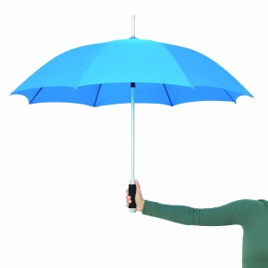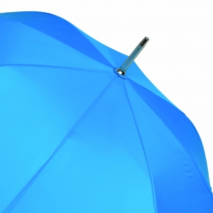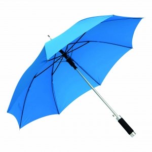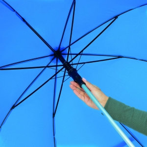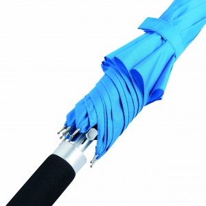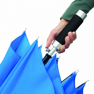 Artikel-Nr: INP56-0103291Automatik-Stockschirm RUMBA: Aluminiumstock, Fiberglasspeichen und Metalltips, Aluminium-EVA-Griff, Polyester-Pongee-Bespannung und -Hülle, Schließband mit Klettverschluss