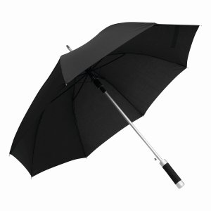 Artikel-Nr: INP56-0103293Automatik-Stockschirm RUMBA: Aluminiumstock, Fiberglasspeichen und Metalltips, Aluminium-EVA-Griff, Polyester-Pongee-Bespannung und -Hülle, Schließband mit Klettverschluss