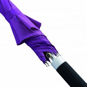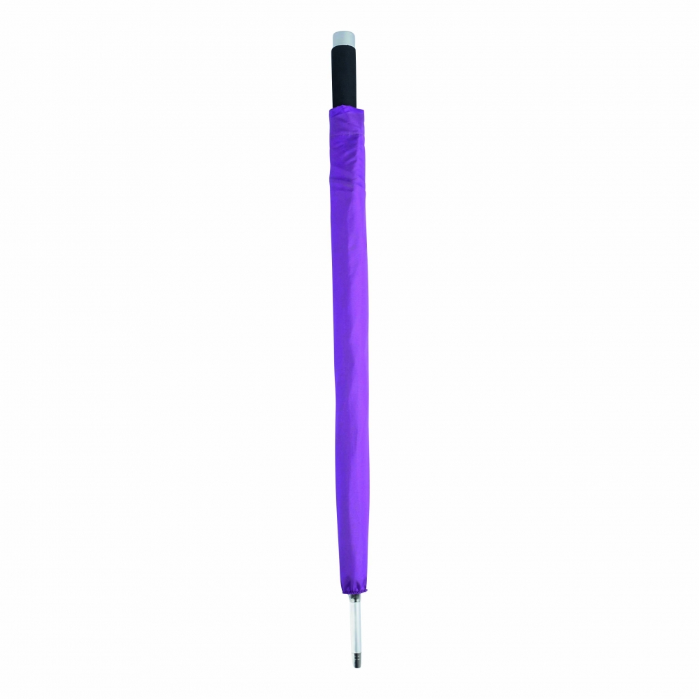 Artikel-Nr: INP56-0103296Automatik-Stockschirm RUMBA: Aluminiumstock, Fiberglasspeichen und Metalltips, Aluminium-EVA-Griff, Polyester-Pongee-Bespannung und -Hülle, Schließband mit Klettverschluss