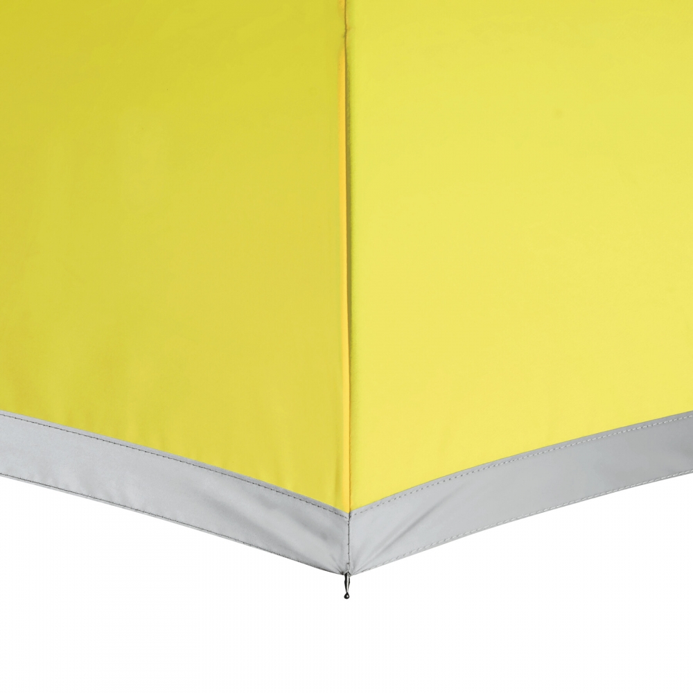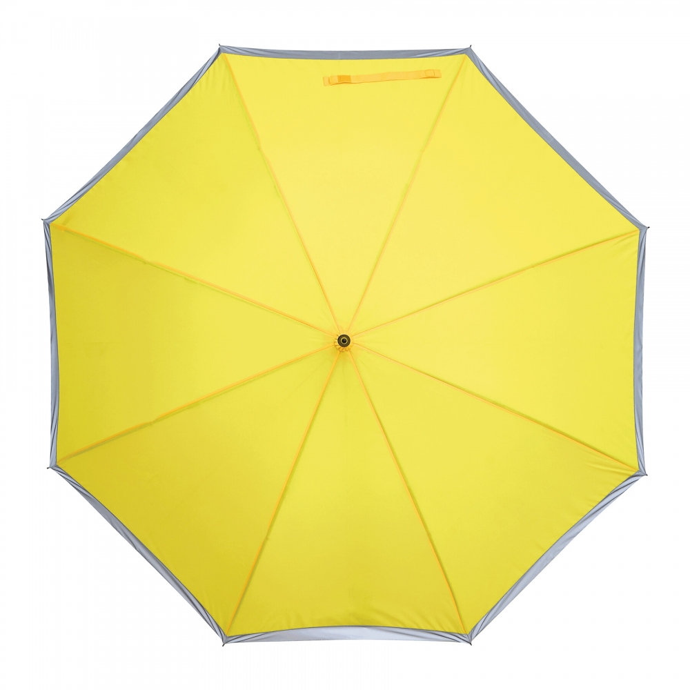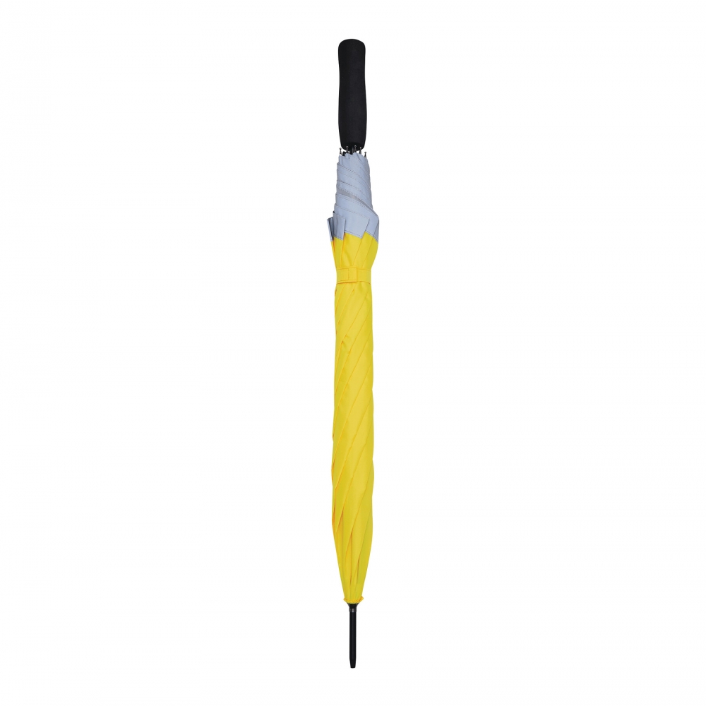 Artikel-Nr: INP56-0103524Automatischer Stockschirm CALIMA: Metallstock, Fiberglasspeichen, Metalltips, EVA-Griff, Polyester-Pongee-Bespannung aus recycelten Kunststoffen / RPET, mit silberfarbener, reflektierender Umrandung, Schließband mit Klettverschluss