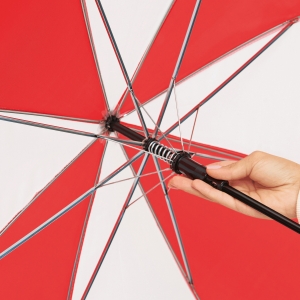 Artikel-Nr: INP56-0103011Automatischer Stockschirm DISCO: Metallstock und -speichen, Kunststofftips und -Rundhakengriff, Polyester-Bespannung, Schließband mit Klettverschluss