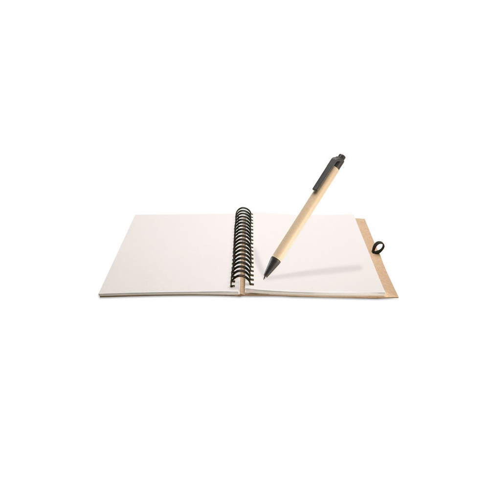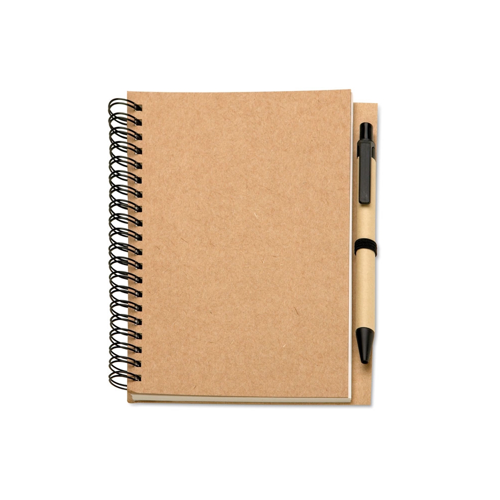 Artikel-Nr: OCBKC7012-13Notizbuch mit 70 Blatt (140 Seiten) recyceltem Blankopapier. Spiralbindung. Stiftschlaufe. Druckkugelschreiber aus recyceltem Karton mit Clip, Spitze und Drücker aus natürlich abbaubarem Kunststoff. Blaue Tinte. FSC MIX CREDIT | P7.1 | FSC-C213206