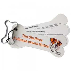 Artikel-Nr: HOP23.49648.00Was für uns Menschen gut ist, kann für die Familienmitglieder auf vier Pfoten ebenfalls nur ideal sein: Gesundes Futter ohne Chemie und Zuckerzusätze versorgt sie mit allen wichtigen Nährstoffen. Gerade Hundeliebhaber sind die perfekte Zielgruppe für dieses Do-it-yourself-Leckerli- Back-Set. Denn mit den 4 Backrezepten und den hochwertigen Backförmchen aus Edelstahl sind Leckerlis im Handumdrehen selbst gemacht. Das Deckblatt der Backrezepte kann individuell werblich gestaltet werden.