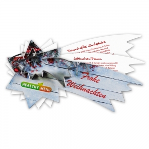 Artikel-Nr: HOP23.49637.00Leckere Backrezepte machen Lust auf die Weihnachtsbäckerei. Zusammen mit der Ausstechform aus spülmaschinenfestem Edelstahl, lassen sich himmlische Kekse zaubern. Das Deckblatt des Rezeptblocks wird mit Ihrer Werbebotschaft gestaltet. Optional ist das Backförmchen mit Rezeptblock in einer Mappe (A6) verpackt: Diese kommt wahlweise mit weihnachtlichen Design (hier ist ein 1-c oder 2-c Logo-Eindruck möglich) oder kann individuell in 4-c gestaltet werden.
