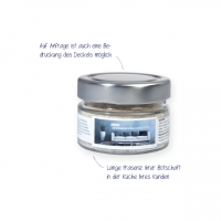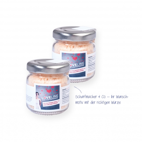 Artikel-Nr: 4941040-2SBOXKLPurer Genuss, Werbebotschaft mit Pep – mit unserem geschmackvollen Gourmetsalz-Duo in hochwertiger Präsentbox liegen Sie bei Ihren Kunden auf jeden Fall richtig! Die Box besteht aus stabilem transparentem Kunststoff und beinhaltet zwei Mini-Gläser hocharomatische BACKOFEN-Salze. Die Banderole auf den Gläsern kann dabei im 4-C-Druck individualisiert werden. Sechs verschiedene Geschmacksnoten mit intensiv-nachhaltigem Aroma verleihen der Werbebotschaft die entsprechende Würze. Die lange Haltbarkeit der Salze sorgt zudem für eine andauernde Präsenz der Botschaft beim Kunden. Als Präsent können die Salze das ganze Jahr über – sei es im Sommer zur Grillsaison oder in der kalten Jahreszeit zu eher deftig-herzhaften Gerichten – verwendet werden.