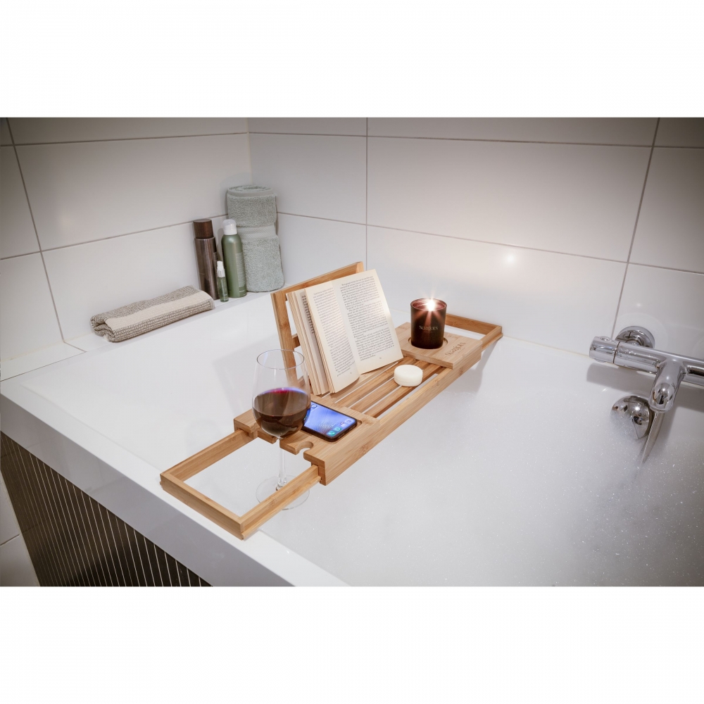 Artikel-Nr: CLP186144Gönnen Sie sich ein herrlich entspannendes Bad mit diesem hochwertigen, verstellbaren Badebrett aus Bambusholz. Dank seines verstellbaren Konzepts passt sich dieses Badebrett perfekt an die jeweilige Badewanne an. Es verfügt über eine verstellbare Ablage für Bücher oder Tablets, einen Telefonständer und Vertiefungen für Ihr Lieblingsgetränk. Universell und einfach auf jedem Badewannenrand zu befestigen. Robuste Ausführung und rutschfest. Pro Stück in einer Verpackung.