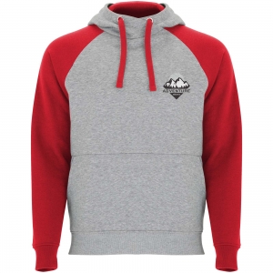 Artikel-Nr: CPOR1058B62Zweifarbiger Unisex Kapuzenpulli. Kapuze mit gekreuztem Kragen und Metallösen. Innenkapuze, Kordelzug und Raglanärmel in Kontrastfarbe. Kängurutasche. Bündchen und Saum aus elastischem 1×1-Rippstrick. Abnehmbares Etikett.