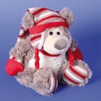 Hochwertiger, handgefertigter Plüschbär aus kuscheligem Polyester mit Mütze. Waschbar.