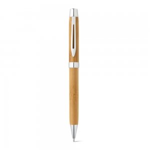 Artikel-Nr: PST91820-160Kugelschreiber aus Bambus mit Drehmechanismus und Clip aus Metall. Blauschreibende Mine. Geliefert in einem Etui aus Bambus. Da das Produkt aus natürlichen Materialien hergestellt wird, können Farbe des Produkts sowie das Druckergebnis von Produkt zu Produkt unterschiedlich sein. ø11 x 140 mm | Kugelschreiber Etui: 170 x 40 x 25 mm
