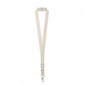 Artikel-Nr: PST94410-150Lanyard aus 100% Baumwolle mit Metallkarabiner, einer abnehmbaren Schnalle aus Weizenstrohfaser und einem Sicherheitsverschluss. Hergestellt in Europa. 20 x 510 mm