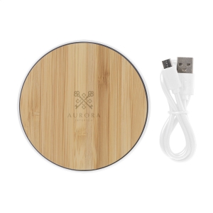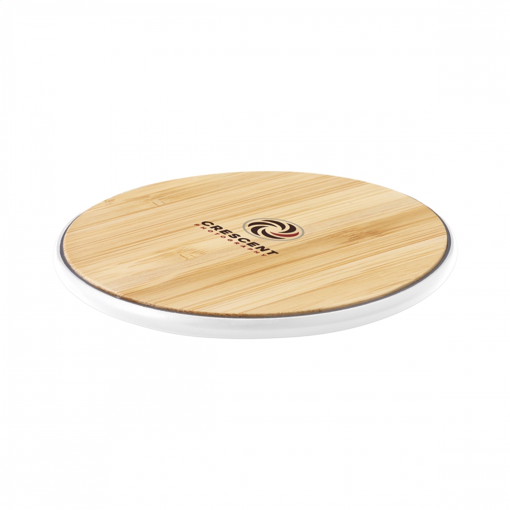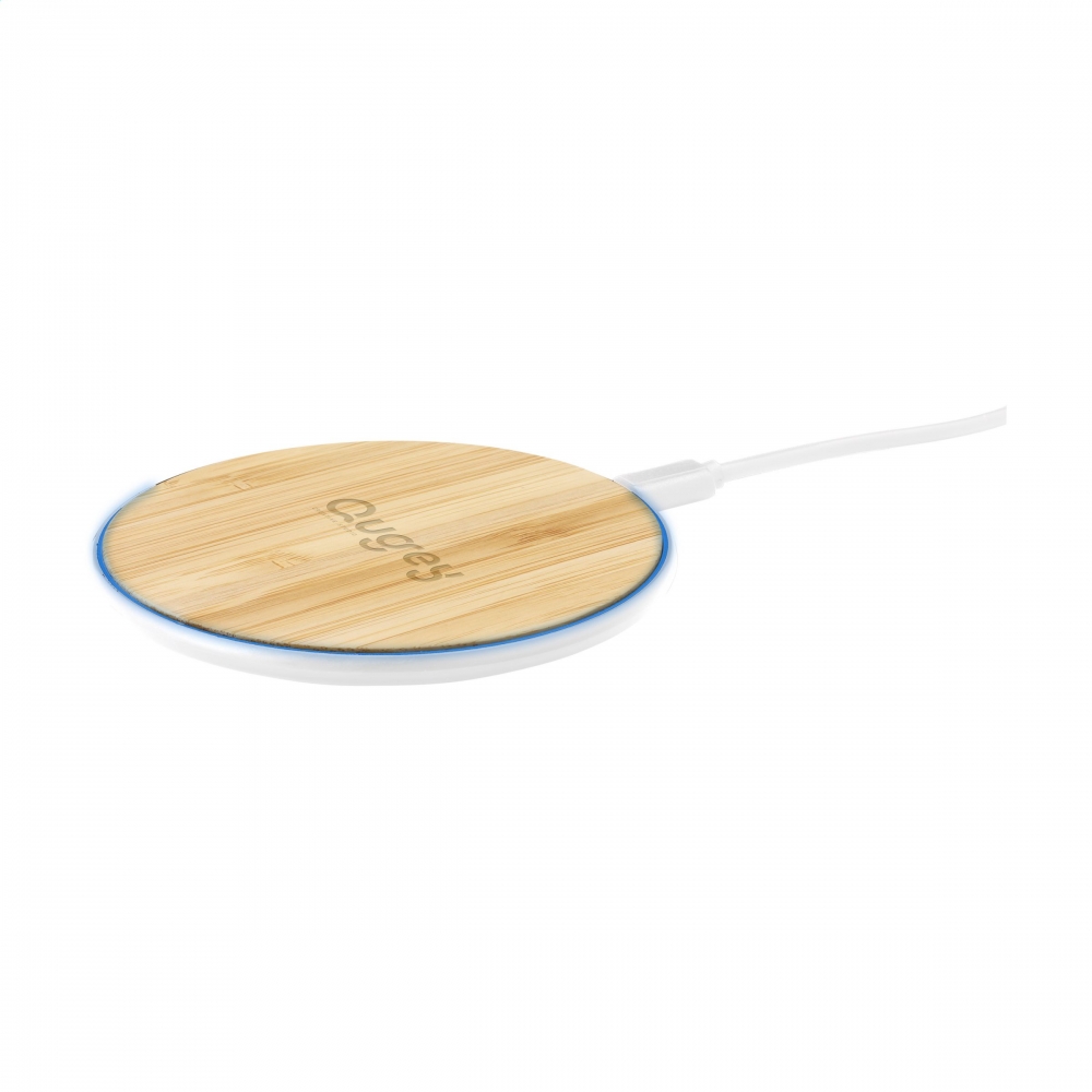 Artikel-Nr: CLP64521010W-ABS / Bambus-Lladegerät zum kabellosen Laden von Mobiltelefonen. Ausgestattet mit einem blau leuchtenden Anzeigering. Kompatibel mit allen mobilen Geräten, die das drahtlose QI-Laden unterstützen (Androids und iPhones der neuesten Generation). Eingang: 9V/2A. Drahtloser Ausgang: 5V/10W. Inklusive Mikro-USB-Ladekabel und Gebrauchsanweisung. Wird einzeln in einem Kraftkarton geliefert.