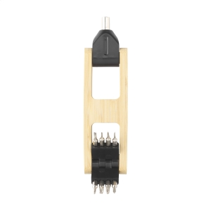 Artikel-Nr: CLP1481449-teiliges Schraubendreher-Bit-Set mit stabilem Bambushalter. Inklusive magnetischem Bithalter und 8 Tools aus Stahl: 4 Bits für Kreuzschlitzschrauben und 4 Bits für Schlitzschrauben. Ein kompaktes und praktisches Set, das man bequem mitnehmen kann. Wird einzeln in einem Kraftkarton geliefert.