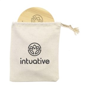 Artikel-Nr: CLP261731-311Set mit 4 Untersetzern aus Bambus (Ø 10 cm) in einer Baumwolltasche. Verpackt in einem Umschlag aus Kraftpapier.