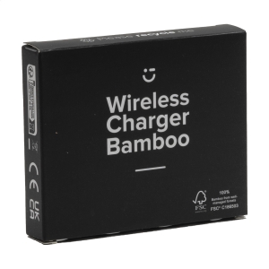 Artikel-Nr: CLP824744Praktisches 15-W-Ladegerät zum kabellosen Aufladen von Mobiltelefonen. Hergestellt aus hochwertigem, FSC 100% zertifiziertem Bambus. Kompatibel mit allen mobilen Geräten, die das drahtlose QI-Laden unterstützen (Androids und iPhones der neuesten Generation). Eingang: 9V/2A. Drahtloser Ausgang: 15W. Mit Anzeigelampe. Inklusive PVC-freiem Ladekabel USB-C zu USB-C und Gebrauchsanweisung. Pro Stück in einer Verpackung.