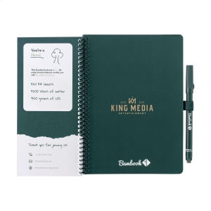 Artikel-Nr: CLP263070-374Bambook Classic Original-Notizbuch im A5-Format, das sich ausradieren lässt. Mit stabilem, biegsamem Einband aus FSC-zertifiziertem Karton, der mit einem dezenten Bambusmuster bedruckt ist, und 20 Blatt/40 Seiten ausradierbarem Papier mit Punktraster. Schreiben Sie mit dem Spezialmarker auf die Whiteboard-Seiten, scannen Sie Ihre Notizen mit der Bambook-App und wischen Sie Ihre Seiten zur Wiederverwendung sauber mit einem feuchten Tuch. Mit Spiralbindung und Stiftschlaufe. Inklusive Stift mit Radiergummi. Das Notizbuch ist handgefertigt. Hergestellt in den Niederlanden. Bambook ist B-Corp-zertifiziert; die Kollektion wird nach den höchstmöglichen ökologischen und sozialen B-Corp-Standards hergestellt.