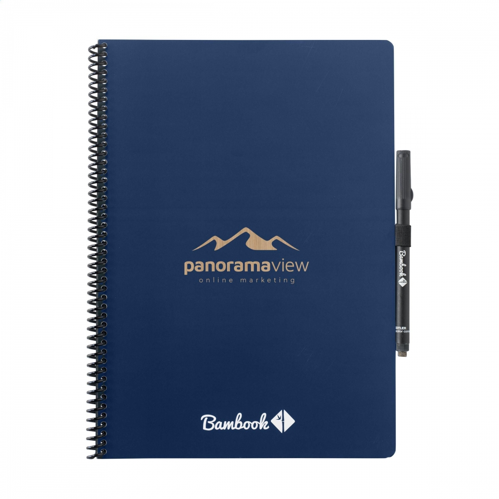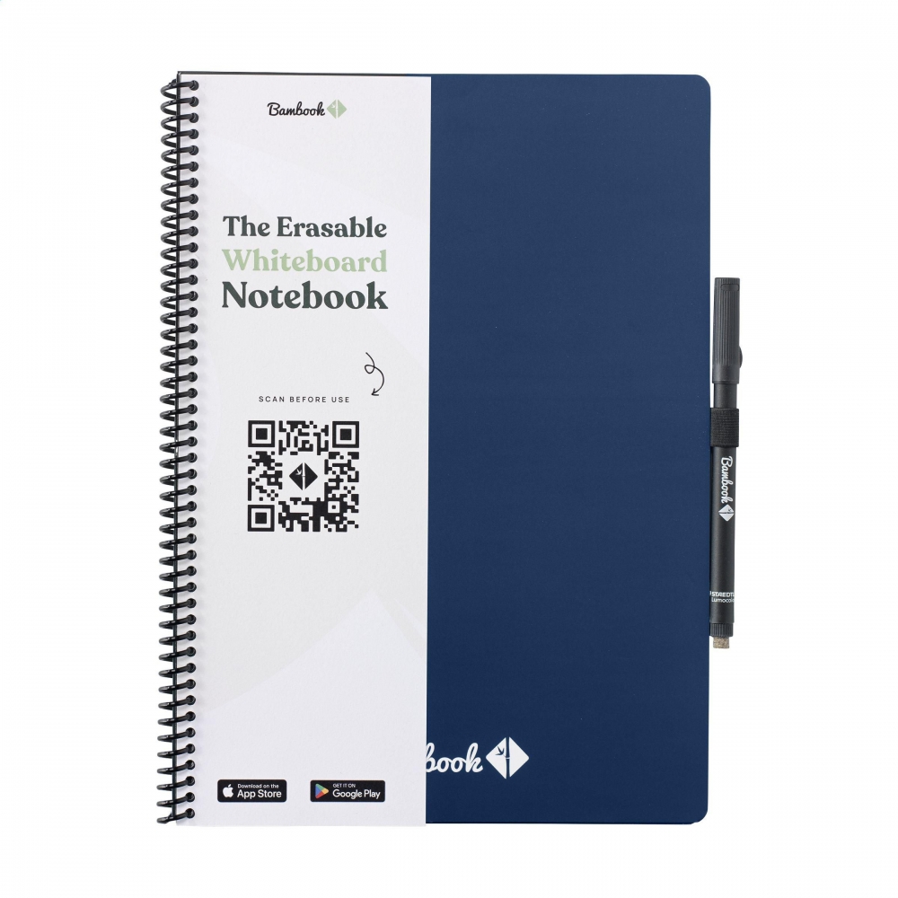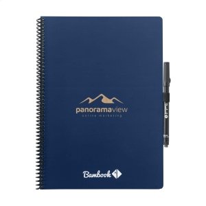 Artikel-Nr: CLP263068-536Bambook Classic Original-Notizbuch im A4-Format, das sich ausradieren lässt. Mit stabilem, biegsamem Einband aus FSC-zertifiziertem Karton, der mit einem dezenten Bambusmuster bedruckt ist, und 20 Blatt/40 Seiten ausradierbarem, liniertem Papier. Schreiben Sie mit dem Spezialmarker auf die Whiteboard-Seiten, scannen Sie Ihre Notizen mit der Bambook-App und wischen Sie Ihre Seiten zur Wiederverwendung sauber mit einem feuchten Tuch. Mit Spiralbindung und Stiftschlaufe. Inklusive Stift mit Radiergummi. Das Notizbuch ist handgefertigt. Hergestellt in den Niederlanden. Bambook ist B-Corp-zertifiziert; die Kollektion wird nach den höchstmöglichen ökologischen und sozialen B-Corp-Standards hergestellt.