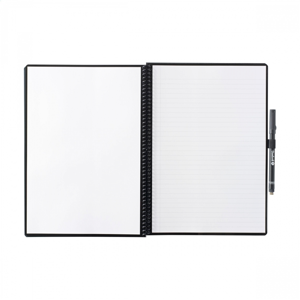 Artikel-Nr: CLP263068-536Bambook Classic Original-Notizbuch im A4-Format, das sich ausradieren lässt. Mit stabilem, biegsamem Einband aus FSC-zertifiziertem Karton, der mit einem dezenten Bambusmuster bedruckt ist, und 20 Blatt/40 Seiten ausradierbarem, liniertem Papier. Schreiben Sie mit dem Spezialmarker auf die Whiteboard-Seiten, scannen Sie Ihre Notizen mit der Bambook-App und wischen Sie Ihre Seiten zur Wiederverwendung sauber mit einem feuchten Tuch. Mit Spiralbindung und Stiftschlaufe. Inklusive Stift mit Radiergummi. Das Notizbuch ist handgefertigt. Hergestellt in den Niederlanden. Bambook ist B-Corp-zertifiziert; die Kollektion wird nach den höchstmöglichen ökologischen und sozialen B-Corp-Standards hergestellt.