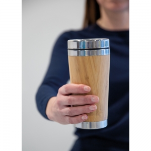 Artikel-Nr: XND432309Dieser trendige Becher verfügt über Innenwände aus 304 Stainless Steel und Außenwände aus organischem Bambus. Hält Ihre Getränke bis zu 3h warm und bis zu 6h kühl. Inhalt: 450ml. Nur Handwäsche.