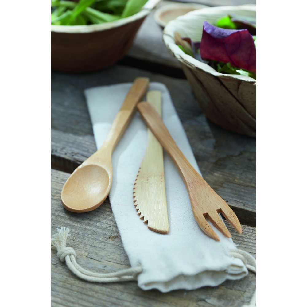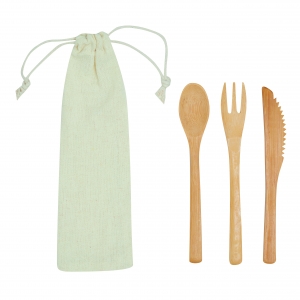 Artikel-Nr: INP56-0304415Bambus Besteckset NATURAL TRIP, im Baumwoll-Säckchen: inkl. Gabel, Messer und Löffel