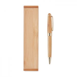 Artikel-Nr: OCBMO9912-40Geschenkset aus Bambus mit Drehkugelschreiber und Box. Blaue Tinte. Da Bambus ein natürliches Material ist, können Farbton und Maße pro Artikel variieren. Dies kann zu Abweichungen im Ergebnis der Veredlung führen.