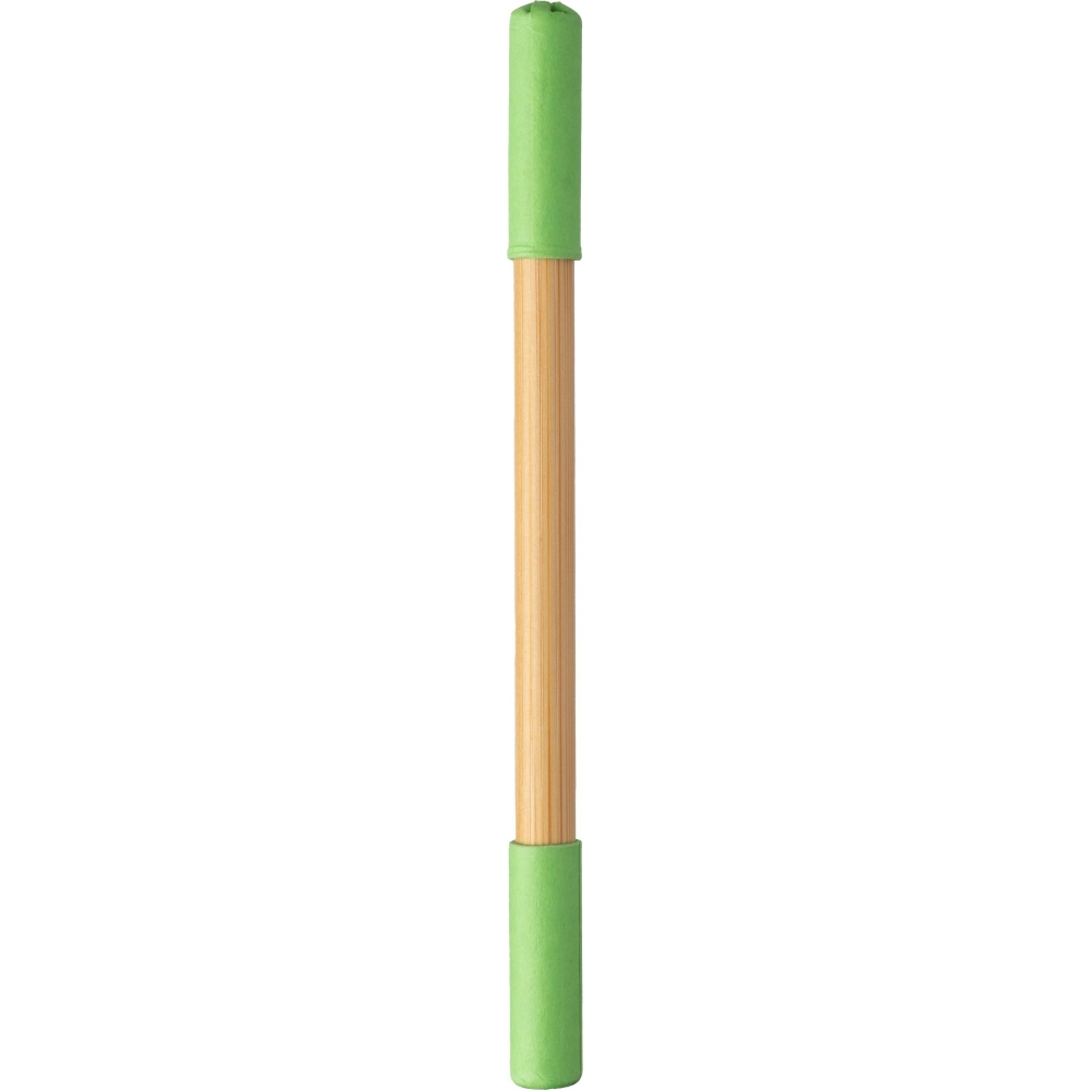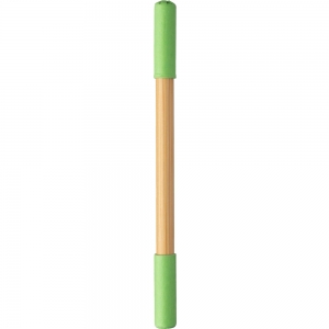 Artikel-Nr: GIV1097472029128Endloser Bleistift und Kugelschreiber aus Bambus. Eine Seite mit endlosem Bleistift und die andere mit Kugelschreiber, beide mit farbigem Kartondeckel. Blaue Tinte.