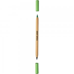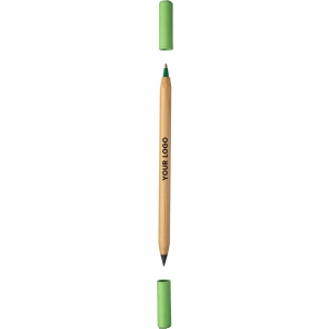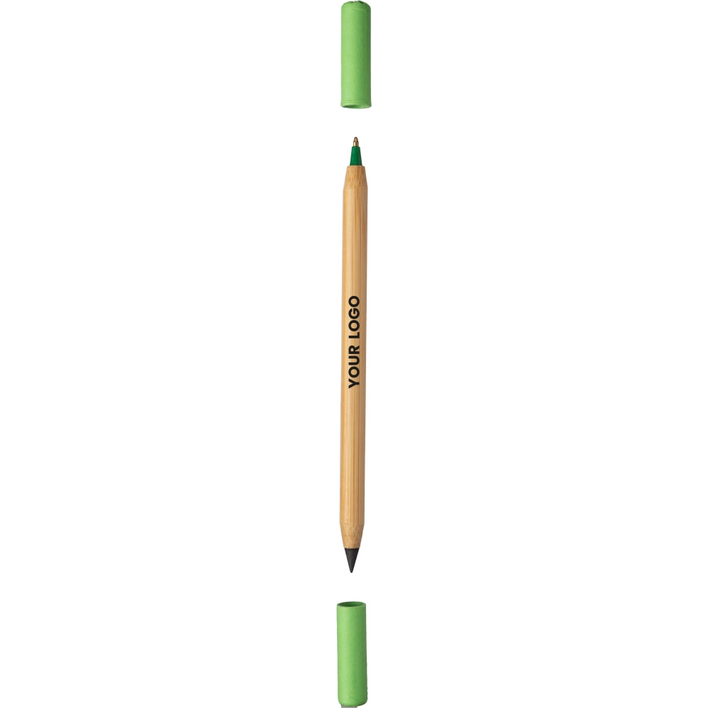 Artikel-Nr: GIV1097472029128Endloser Bleistift und Kugelschreiber aus Bambus. Eine Seite mit endlosem Bleistift und die andere mit Kugelschreiber, beide mit farbigem Kartondeckel. Blaue Tinte.