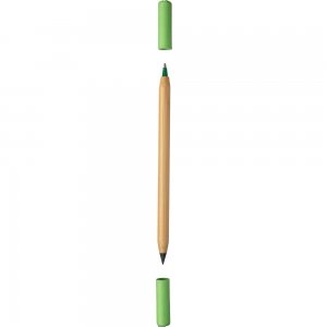 Artikel-Nr: GIV1097472011128Endloser Bleistift und Kugelschreiber aus Bambus. Eine Seite mit endlosem Bleistift und die andere mit Kugelschreiber, beide mit farbigem Kartondeckel. Blaue Tinte.