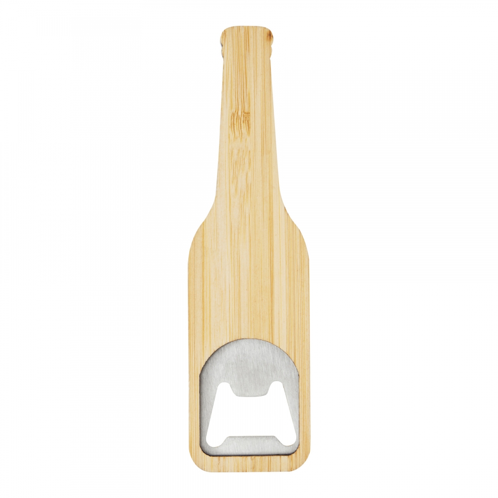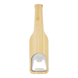 Artikel-Nr: INP56-0499018Bambus-Flaschenöffner MY BEER: in Flaschenform, Edelstahl-Rückseite mit Magneten