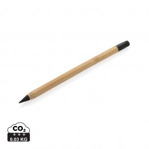 Artikel-Nr: XND611099Dieser Infinity-Stift mit Radiergummi ersetzt Ihren traditionellen Bleistift. Herkömmliche Bleistifte schreiben in der Regel nur bis zu etwa 200 Meter, aber dieser FSC®-Bambus Infinity-Stift hat eine Schreiblänge von bis zu etwa 20.000 Metern, da er eine Graphitspitze verwendet, um eine Graphitlinie zu erzeugen. Er schreibt nicht nur wie ein Bleistift, sie können Iher Notizen auch wie gewohnt wegradieren.