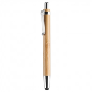 Artikel-Nr: OCBMO8052-40Druckkugelschreiber / Stylus aus Bambus mit glänzendem Chromelementen. Blaue Tinte. Bambus ist ein natürliches Produkt, es kann daher zu leichten Abweichungen in Farbe, Dekor und Maßen kommen.