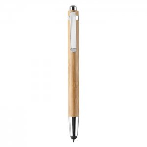 Artikel-Nr: OCBMO8052-40Druckkugelschreiber / Stylus aus Bambus mit glänzendem Chromelementen. Blaue Tinte. Bambus ist ein natürliches Produkt, es kann daher zu leichten Abweichungen in Farbe, Dekor und Maßen kommen.