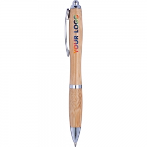 Artikel-Nr: GIV8524011Kugelschreiber 'Bali' aus Bambus mit silberfarbener Spitze, Clip, Ring und Stiftende. Minenfarbe: Schwarz.