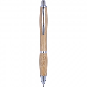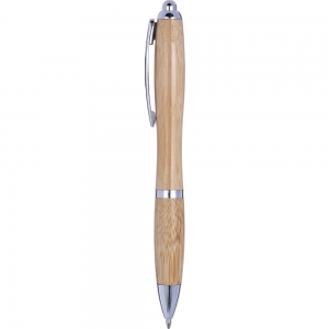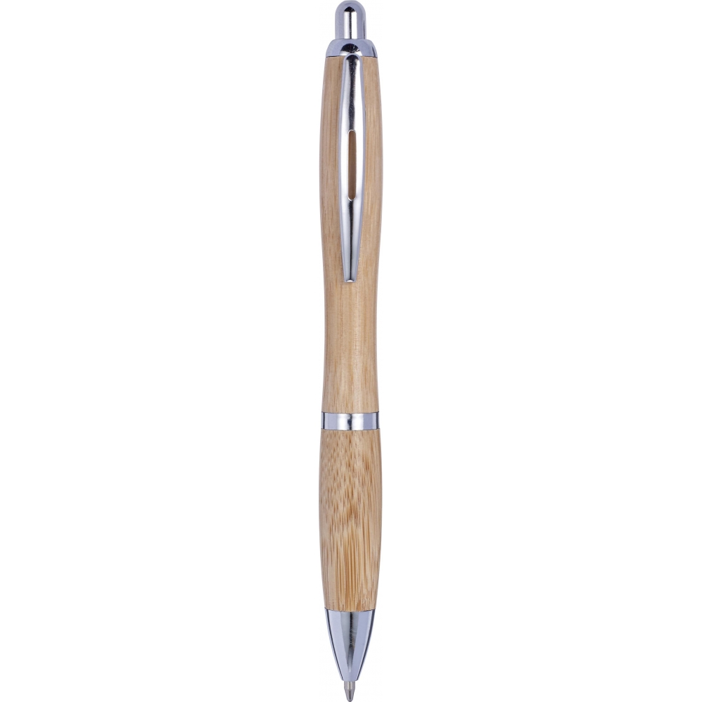 Artikel-Nr: GIV8524011Kugelschreiber 'Bali' aus Bambus mit silberfarbener Spitze, Clip, Ring und Stiftende. Minenfarbe: Schwarz.