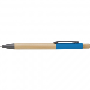 Artikel-Nr: GIV1014841004128Kugelschreiber aus Bambus mit aluminiumfarbenen Details. Clip und Spitze aus Graphit, mit Bambusdetails an der Spitze. Blaue Tinte.