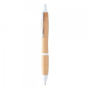 Artikel-Nr: AND810441-01Bambus-Kugelschreiber mit farbigen Kunstoffelementen und Metallclip, blauschreibend.