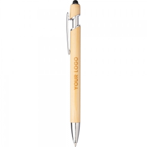 Artikel-Nr: GIV1097473011128Kugelschreiber aus Bambus mit Stylusspitze und Metallclip. Blaue Tinte.