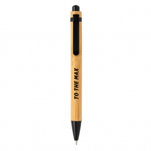 Artikel-Nr: XND610321Schwarzschreibender Kugelschreiber mit Schaft aus Bambusholz mit Metall-Clip.