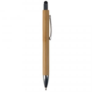 Artikel-Nr: ART87285N0002Kugelschreiber aus Bambus, inkl. metallbeschichteten Drücker und Spitze und einen Clip aus Metall. Der auf dem Drücker platzierte Touchpen, für die Bedienung von Smartphone-Displays, gibt es in sechs Farben. Inkl. einer blau schreibenden Jumbo-Mine aus Kunststoff.