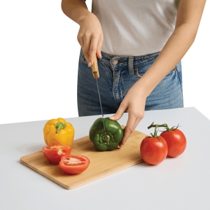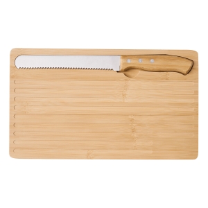 Artikel-Nr: INP56-0307061Bambus-Schneidebrett CRUMBS: inkl. Brotmesser mit Edelstahlklinge und Bambusgriff, Messer lässt sich perfekt in Vertiefung verstauen