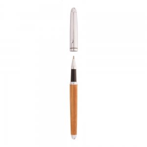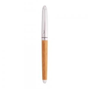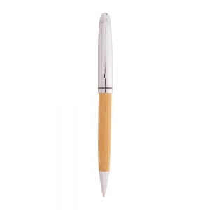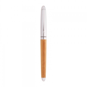 Artikel-Nr: AND800506Elegantes Schreibset aus Bambus und Metall, bestehend aus einem Kugelschreiber und einem Rollerball, verpackt in einer Bambus-Geschenkbox, blauschreibend.