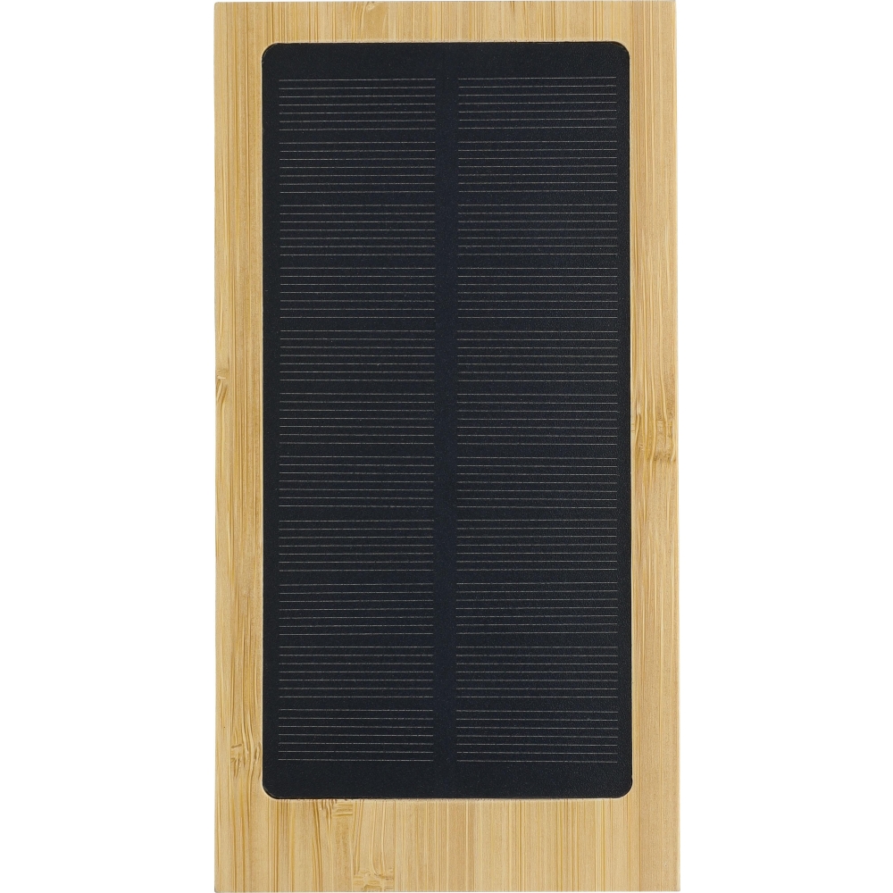 Artikel-Nr: GIV1266572011Die Bambus-Solarstrombank verfügt über eine Kapazität von 10.000 mAh, zwei USB-A-Ausgänge sowie zwei Typ-C-Anschlüsse für Eingang und Ausgang. Auf der Rückseite befindet sich ein Wireless Charger mit einem lasergravierten Symbol und fünf Kontrollleuchten. Auf der Oberseite ist ein 6,3 x 12,8 cm großes Solarpanel angebracht. Der kabellose Ausgang beträgt 5 V DC/1 A (5 W), der kabellose Ladeabstand 6 mm. Eingang / Ausgang über Kabel: DC 5 V/2,4 A. Die Powerbank ist mit Kurzschluss-, Überladungs- und Überentladungsschutz ausgestattet. Ein 30 cm langes weißes Kabel ist inklusive. Das Produkt ist einzeln in einer braunen Pappschachtel verpackt.