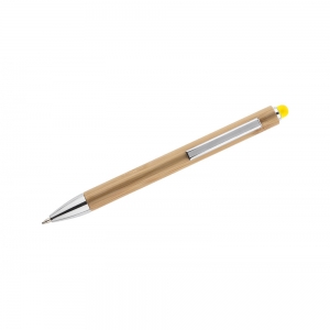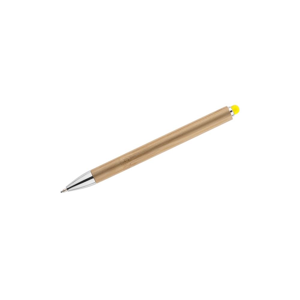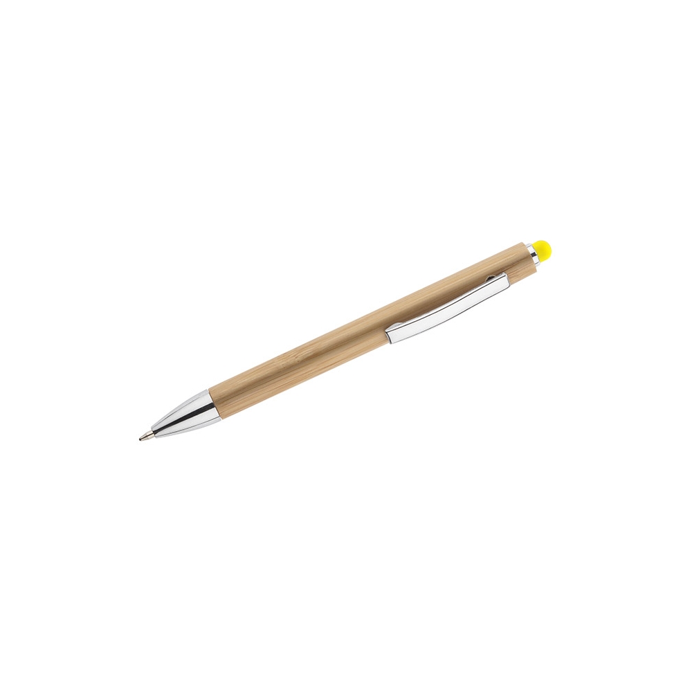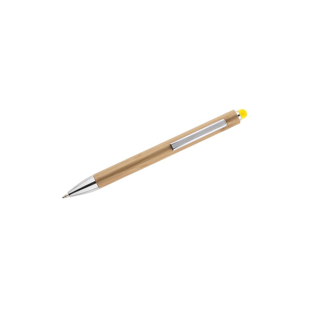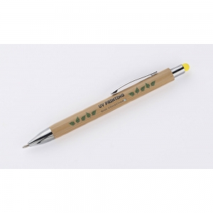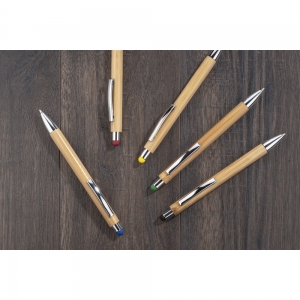 Artikel-Nr: ARD19661-12TUSO ist ein Stift, dessen Körper vollständig aus Bambus besteht. Verziert mit Chromelementen. Der farbenfrohe Tipp für Touchscreens ist eine interessante Dekoration. Automatischer Kugelschreiber. Ersatzmine Typ G2 in blau.