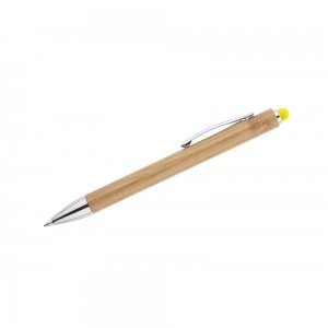 Artikel-Nr: ARD19661-12TUSO ist ein Stift, dessen Körper vollständig aus Bambus besteht. Verziert mit Chromelementen. Der farbenfrohe Tipp für Touchscreens ist eine interessante Dekoration. Automatischer Kugelschreiber. Ersatzmine Typ G2 in blau.