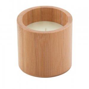 Artikel-Nr: AND800760Pflanzliche Wachskerze mit Vanilleduft und Bambushalter. Mit 160 Gramm Wachs. In Kraftpapierbox.