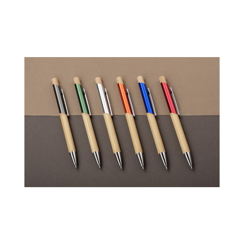 Artikel-Nr: ARD19727-07BALIS ist ein einzigartiger Bambuskugelschreiber mit markanten farbigen Akzenten und metallischem Glanz, der ihm Charakter verleiht. Der Clip und die silberfarbene Zierleiste unterstreichen die Eleganz des Stiftes, während die Druckmechanik den Gebrauch noch komfortabler macht. Aus natürlichem Bambus gefertigt, ist er eine stilvolle und umweltfreundliche Wahl.