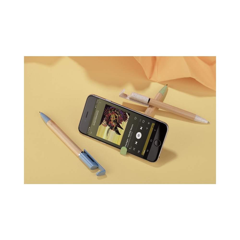 Artikel-Nr: ARD19201-17Der FONIK-Stift mit Bambusgehäuse und Clip aus Weizenstroh ist ein praktisches Gadget, das auch als Telefonständer dient.