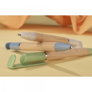 Artikel-Nr: ARD19201-13Der FONIK-Stift mit Bambusgehäuse und Clip aus Weizenstroh ist ein praktisches Gadget, das auch als Telefonständer dient.