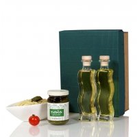Artikel-Nr: A276K00813Italienisches Präsentset bestehend aus zwei formschönen Flaschen Fila Welle 0,1 Ltr. gefüllt mit Basilikum- Öl und Basilikum-Orangen- Zitronen Essig in Feinschmecker- Qualität, passend dazu ein klassisches Pesto Genovese 130 g., verpackt in einer farblich abgestimmten Präsentkartonage mit passendem Sizzle Pak. Ein kulinarisches Dankeschön an Kunden und Geschäftspartner.