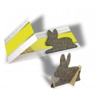 Artikel-Nr: 449010246Mit den beiliegenden 3 Teilen stecken Sie sich den Osterhasen zusammen. Filz und Holz zusammen ergeben eine harmonische Kombination. Dieser Steckhase direkt auf den Schreibtisch erinnert an den Absender. Platz für den Werbeaufdruck (ab 250 Stück) ist auf dem Standardmotiv im Innenteil der Karte. Eine eigene Gestaltung der Karte ist ab 250 Stück möglich. Ein Kuvert ist separat erhältlich Art. 6101 oder 6104.