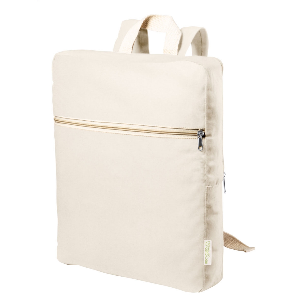 Artikel-Nr: AND722536-00Rucksack aus recycelter Baumwolle mit Reißverschlussfach und Vordertasche. Mit Label recycelte Baumwolle. Material: 100 % recycelte Baumwolle, 275 g / m².